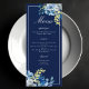 Blå vit Blommigt Elegant bröllop, innermeny Meny