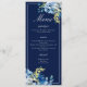 Elegant blå och vit ros dekorerar den vackra blommigt kvällsmenyn för ett vinterbröllop. Chicen accentueras med söt indigo vattenfärgsblommor och en underbar gult botanisk ton. Lägg till kursen och dessertlistan i vitt skript för gästerna.