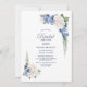 Inbjudan dina vänner och din familj att närvara vid din möhippa med den här blå och vita blommigten inbjudningskort för möhippan. Du kan enkelt lägga till alla nödvändiga detaljer i anpassadet. Välj mellan olika pappra typer och stilar i hörnet för att göra inbjudningarna unika. Du kan dessutom ladda ned inbjudan om du föredrar ett digitalt format.