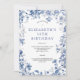 Blå vit Blommigt Toile Watercolor 50:e födelsedage Inbjudningar