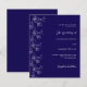 En klassisk, modern mörk blått bakgrund. Dekoreras med vita enkla blommigtar. Anpassa och lägg till namn och detaljer. 1 lakan = 1 inbjudan tryckt kant till kant.