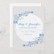 När du och din fästman går in i ett rum vänder sig alla huvuden. Din klassiska stil inger avund hos dina vänner och din bröllopsdag är årets mest efterlängtade händelse. Meddela datumet för bröllopet med flärd. Välj en utsmyckad men ändå modern save-the-date-inbjudan med blå blommor.