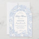 Blå vit blomsterfågel konstnärlig baby shower inbjudningar