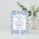 Personalisera denna vackra blå och vita chinoiserie bröllopsfestinbjudan.