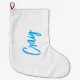 Blå vit ditt namnkalligrafi - unik minimalistisk stor julstrumpa