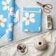 En enkel daisy med söt i vitt på en blå bakgrund med elegant guld i mitten.