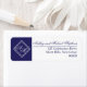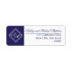 Blå vit enkel geometrisk monogram Bröllop Returadress Etikett