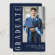 Inbjudan vänner och familj till din sons eller dotters studenten med denna enkla, moderna och elegant mörk blått och vita inbjudan till studenten. Den här inbjudan är så enkel att anpassa - lägg till ett foto och all annan information i de enkla textrutorna. Vare sig det är festdrycker, buffé eller middag - den här inbjudan är tillräckligt mångsidig för spelar ingen roll smarta avslappnader.
