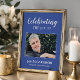 Denna eleganta vita text på blå fotominnesmärke är ett vackert sätt att minnas en nära och kära under firandet av livets tjänst. Detta gör en vacker souvenir du kan visa i ditt hem efter.