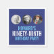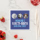 Blått och kontrasterande ljusblått och vitt napkin för 99-årsdagen. Grafikblöjor som du kan anpassa med din egen namn och tre foton av din födelsedagsflicka eller pojke. Unik design av Sarah Trett för www.mylittleeden.com