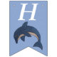 Den här flagga formade buntbanderollen Grattis på födelsedagen är en glansig ljusblått med en glittrande mörk blått och vit söt tecknad delfin i hoppande läge. Anpassa födelseår med mallarna.