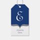 Blå vit Grått Monogram Namn Gift-Märkre Presentetikett