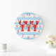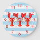 Klassisk ljusblå pastel och vit nautisk vågrät rand. Med tre röda hummer som dekoration. Röda klocknummer ansikte.