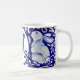 Blå vit kanin Blommigt Monogram Elegant Kaffemugg