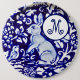 Den här chinan med elegant kobolt, blått och vitt, har en hel kanin, fåglar och blommor. Kan anpassas med ett valfritt monogram.