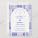 Blå-vit lapptäcke toile bröllop inbjudningar