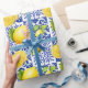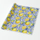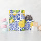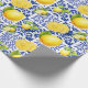 Blå Vit Lemon Kakel Mönster Medelhavet Citrus Presentpapper
