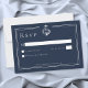 Fira din kärlek vid havet med detta svarskort i marinblått med ankare för kustnära bröllop utan middagsval. Med ett krispigt vitt ankare och elegant typsnitt på en djupblå bakgrund är det perfekt för en yachtklubb eller strandceremoni. Sofistikerat och tidlöst för din nautiska bröllopsdag. Skapat av Simply Farmhouse Press.