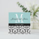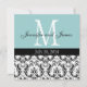 Blått mobbat Monogram bröllopsinbjudning. Konst och design av Elke Clarke ©2010. Anpassa med namn, monogram, datum i bröllop och din inbjudan på båda sidor om den här vackra bröllopsinbjudan. Du kan också ändra bakgrunden till färg och inte glömma att prova olika papprare val. Var och en lägger till sin egen "titta" utöver designen.