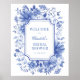 Blå vit peony chinoiserie bröllopsfest välkomna poster
