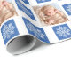 Blå vit snöflingor Fotjurets Helgdag, Papper. Söt vit snöflinga på blå bakgrund. Anpassningsbarna har ett foto - lägg in ditt favoritfoto i mallen och gör din egen unika jul papper.