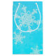 Snyggt och modern festförpackning med blå bakgrund försedd med delikat vitt snöflingor. Den invecklade, snöre-liknande snöflingan ger elegans och charm, perfekt för att fånga julhelgens glatta anda. Perfekt för inslagning av gåvor på ett minnesvärt sätt och för öga-fångst, i säckar eller lådor. Med den här designen kombineras funktionalitet med en protesetik, den skapar som ett val av perfekt för firande och skapar leenden överallt.