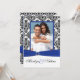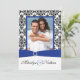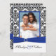 Blå, vit, svart damaskfotografisk bröllopsinbjudan inbjudningar