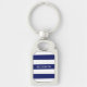 Blå vit vågrät skiva Rand #3 Monogram Rektangulärt Silverfärgad Nyckelring