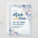 Fira kärlek i blomning med vår elegant Blåvit Blommigt Bröllopinbjudan till . Det här anpassadet inbjudan är delikaterat med friska nyanser och snygga blommor och anger perfektens tonläge för din speciella dag. Gå med oss när vi målar vår framtida duk tillsammans mitt i naturens vackraste detaljer.