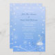 Vacker vinterbröllopsinbjudan med blå bakgrund och vita snöflingor och anläggningar runt kanterna. Denna design finns på många färdiga mallprodukter för att möta alla dina behov av bröllopspapper.