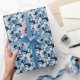 Blå, vita blommor på svart bakgrund. presentpapper