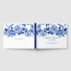 Antik Blå Vita Fåglar Blommor och Löv Bröllopsfest Gästbok är en elegant souvenir. Handmålad traditionell vintage asiatiskt inspirerad, Chinoiserie blomsterdesign med fåglar, grenar och bladverk i olika nyanser av blått. Skapad av internationellt känd och licensierad konstnär, Audrey Jeanne Roberts. Det finns en komplett uppsättning produkter tillgängliga som matchar. Upphovsrätt.