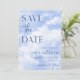Detta är en Blå Vita Gnistrande Moln Drömmig Elegant Bröllop Spara Datum Inbjudan!