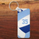 Den här volleyball-tematiska nyckelkedjan för flickor eller pojkar har den abstrakt överdimensionerade bilden av en ljusblå, mörk blått och vit volleyboll på framsidan, på vilken du kan anpassa spelarens jersey-nummer - på baksidan döljer idrottsmannens namn en solid ljusblå bakgrund - av katz_d_zynes