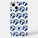 Den här roligtens volleyball-temat iphone case har en enkel mönster av volleybollar som har blå och vita paneler på en anpassade vit bakgrund - anpassa med idrottsmannens monogram - av katz_d_zynes