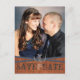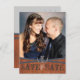 Mörka trätoner med korslagda band prydda med länkade hästsko. Lägg till ditt foto och anpassa för det perfekta kortet för att spara datum.