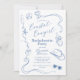 Fira bruden med dessa retro, handritade blå "coastal cowgirl"-temade stiliga inbjudningar. Denna trendiga inbjudan kan anpassas med dina egna detaljer. Välj att få dem tryckta, ta emot som digital nedladdning eller båda!