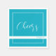 Blåblöjor av snyggt med himmel med ett litet vitt ram, "Cheers" i handskrivet manus av stil och "njut" i djup teal på en vit banderoll. Fullständigt anpassade - enkel, modern och perfekt för bröllop, födelsedagsfester eller speciella evenemang.