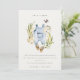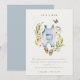 Blåa bladiga kläder för pojkbaby - födelseannons inbjudningar
