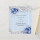En ljusblå bakgrund med blå ro, blommor och faux silver konetti. Anpassa och lägg till information om namn och bröllop. Black brev. 1 lakan = 1 inbjudan tryckt kant till kant.