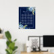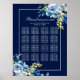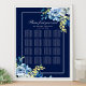 Bläddra dina gäster på vinterbröllopet till sina platser med den här eleganten poster marinblå blommigt som är dekorerad med vackra vita och indigo vattenfärga ro med en söt gult accent. En chic till en kvällsceremoni i bröllop. Hitta din plats. Lägg till 16 bord.