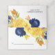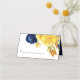 Här är ett söt vikt bröllop-platskort med vattenfärgade blommor och löv i marint blått och gult guld, med beröring av ljusblått och grönt. Din anpassningsbar är mörk blått. Den andra sidan har samma blommigt-bild, med ytterligare två fält som du kan anpassa. Kortets baksida är solid passande mörk blått. Det här kortet matchar bröllopsinbjudningar och andra bröllop-produkter i vår butik, och användor teckningar från LABF-skapelser.