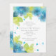 Blåa blommor blommigt bröllop repetitionsmiddag inbjudningar