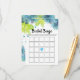 Fintvätt med bingo-spelkort för blåa blommor blommigt vår bröllop möhippa. Den har vackra blommor i blått, akvat, turkos och marint blått, löv i grönt.