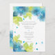 Den ömtåliga inbjudan till blåa blommor blommigt vår bröllop, som innehåller vackra blommor i blått, akvarium, turkos och marinblått, löv i grönt och text i grått. Denna elegant och moderna utformning ingår i en uppsättning bröllop och är en helt ny perfekt för anpassade för vår eller sommar bröllop.
