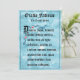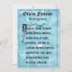 Fatima Prayer, som är skriven på latin, kommer från Marian-lärlingar vid Fátima i Portugal 1917. Denna bön läggs vanligtvis till i slutet av varje decennium av Rosary. På baksidan av kortet finns bön på engelska. Det finns blåa dekorativa blommor och en blå vattenfärgsbakgrund.