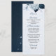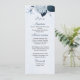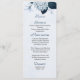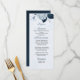Blåblåblommor med vackert marinblått löv botaniskt bröllop-meny Kortets rygg: elegant dammiga blå liljor på marinblå bakgrund Uppgifterna i glitter simuleras