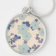 Blåa blommor, Lila blommor, Blommönster Rund Silverfärgad Nyckelring