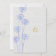 En inbjudan från elegant bröllop som innehåller ett vackert blåa blommor med en ljusblå cirkel på en ljusare grått-bakgrund och en illusion av det dubbelfärgade ljus. Det är ge illusionen av bruden och brudgummens namn på framsidan av att bli präglad.