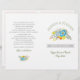 Folklore blåa blommor moderna blommigt-häftet stil-uppspelade ceremonin i bröllop och party-programmet med blommor i söt vintage i ljusblå och stil med gult grönt, en löv-banderoll och böjd text med ett vismiskt typsnitt som ser ut som handskrift. Den här nya mallen och trendiget är en del av en uppsättning bröllop och är helt och hållet anpassade. Perfekt för en rustik land vår eller sommar bröllop. Fold den i mitten för att ha ett uppfällt stil-bröllopsprogram. Välj endast den här typen av pappert värde när det viks väl.
